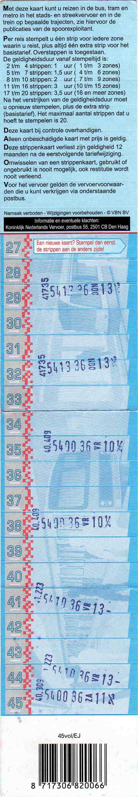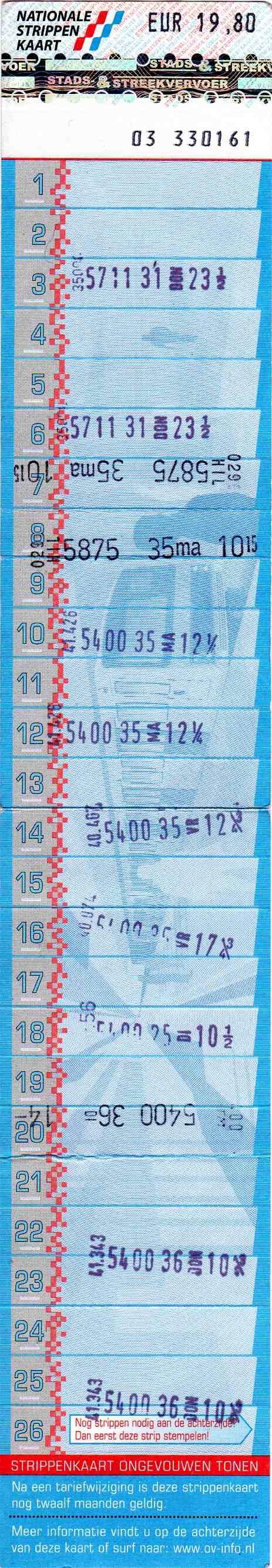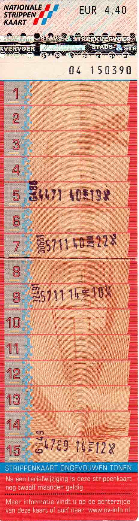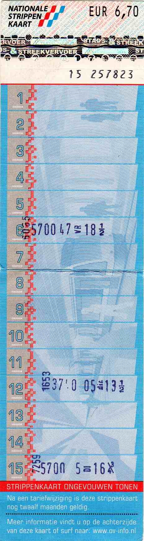 This model was released a few months after the former model. The black background of the numbers on the left of those tickets caused some problems. If a ticket was validated upside down, the stamp was partially not readable. Hence the lighter background on these tickets.