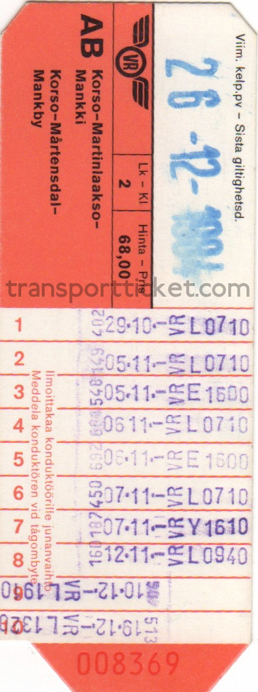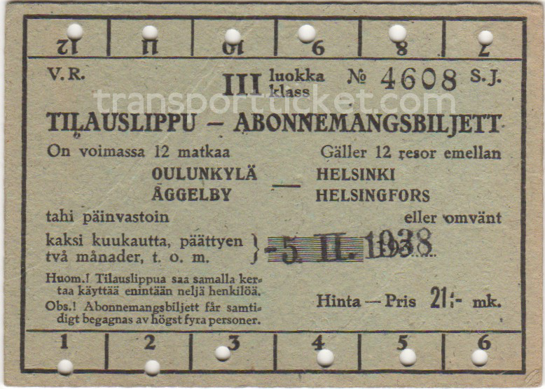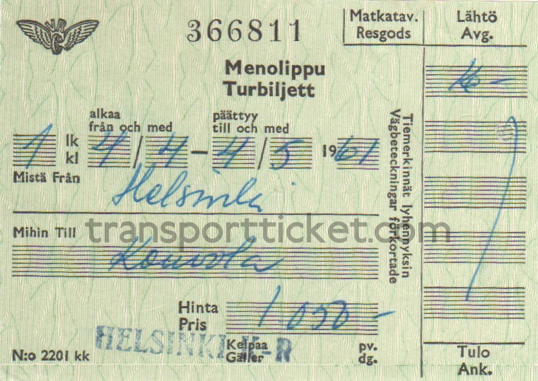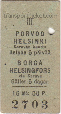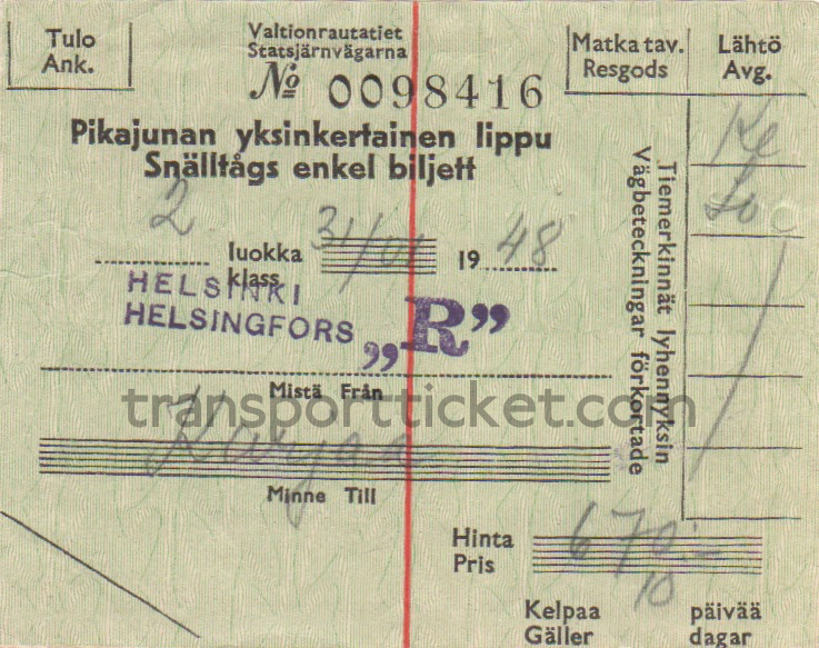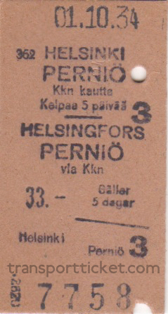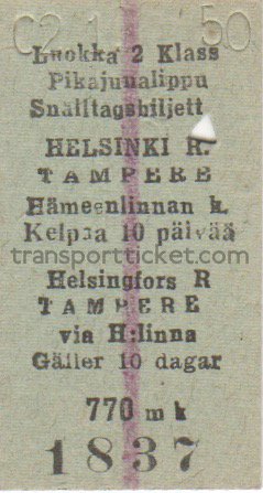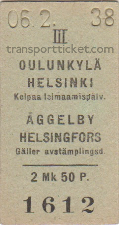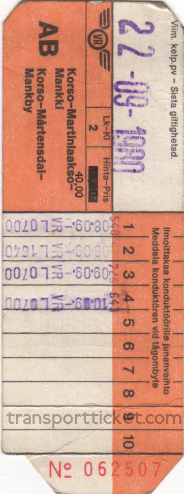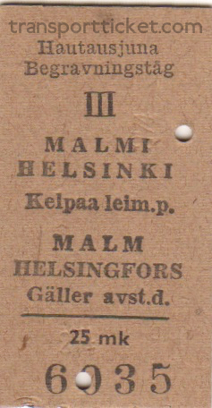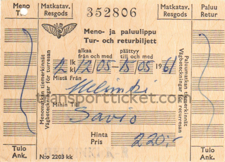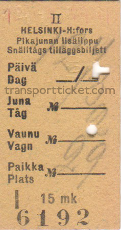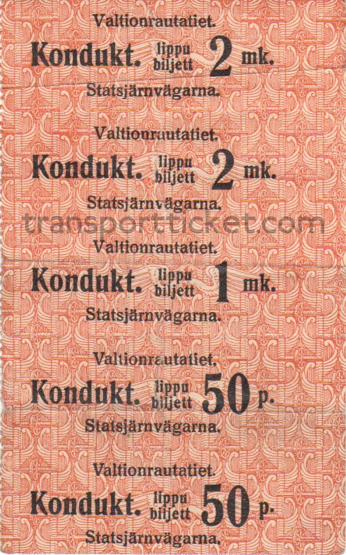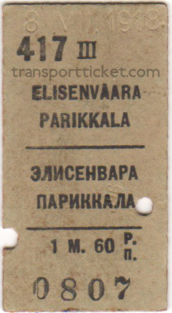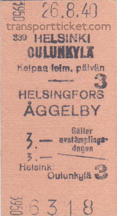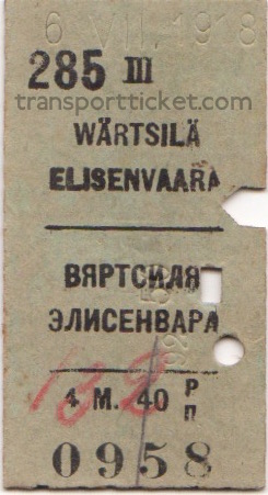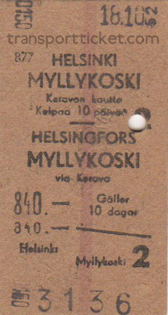Finland has two official languages: Finnish and Swedish. Hence tickets are usually in both languages. From 1809 until 1917 Finland is an autonomous grand duchy within the Russian Empire. On tickets from this era you'll also find Russian texts.