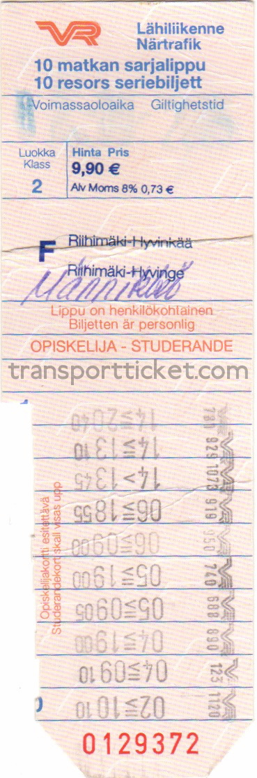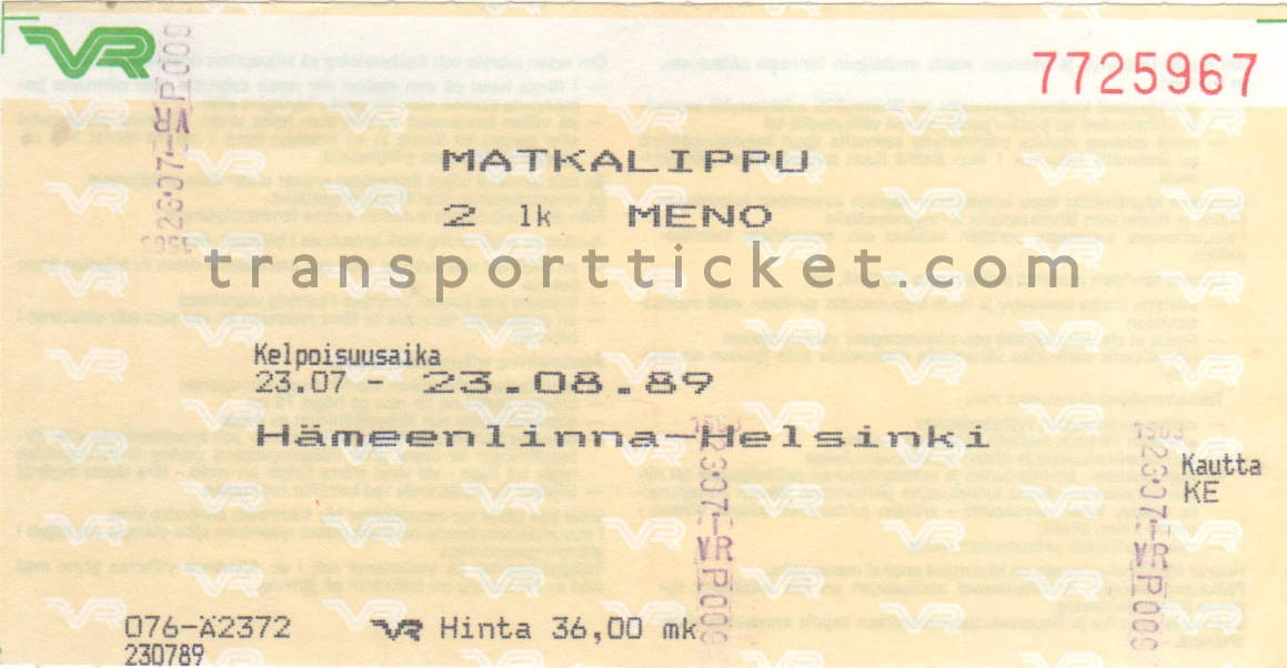 VR is founded in 1862 as Suomen Valtion Rautatiet (Finnish State Railways). It's name changed in 1922 into Valtionrautatiet (State Railways) and again in 1995, after privatization, into VR-Yhtymä Oy (VR Group).